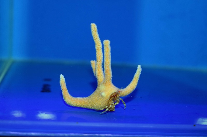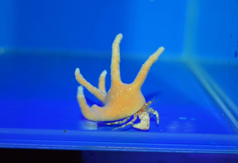 サンゴの中に住んでいるスタッグホーンハーミットクラブ!