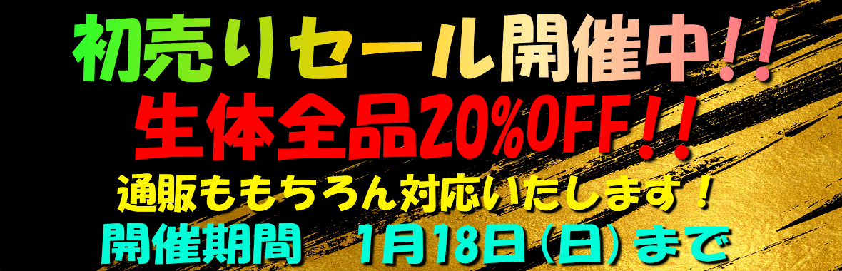 1月18日(日)までは生体全品20%OFF!
