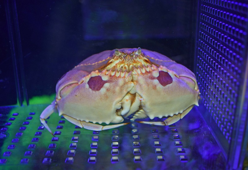 ごついハサミで貝などを砕いて食べます!