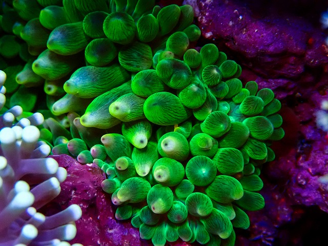 サンゴイソギンチャクはメタリックグリーンの美発色個体から、